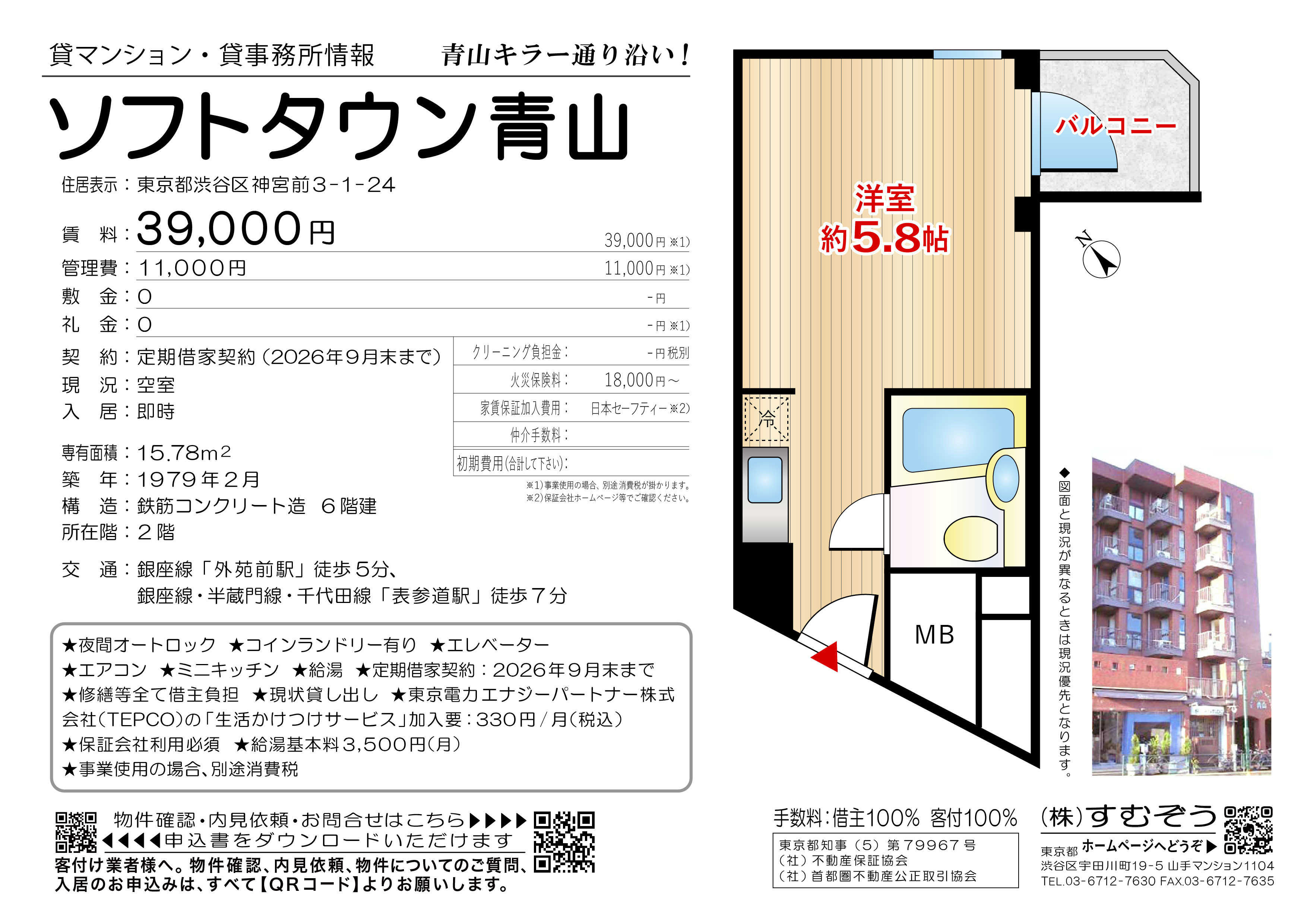 | 物件所在地 | 東京都渋谷区神宮前3丁目 |