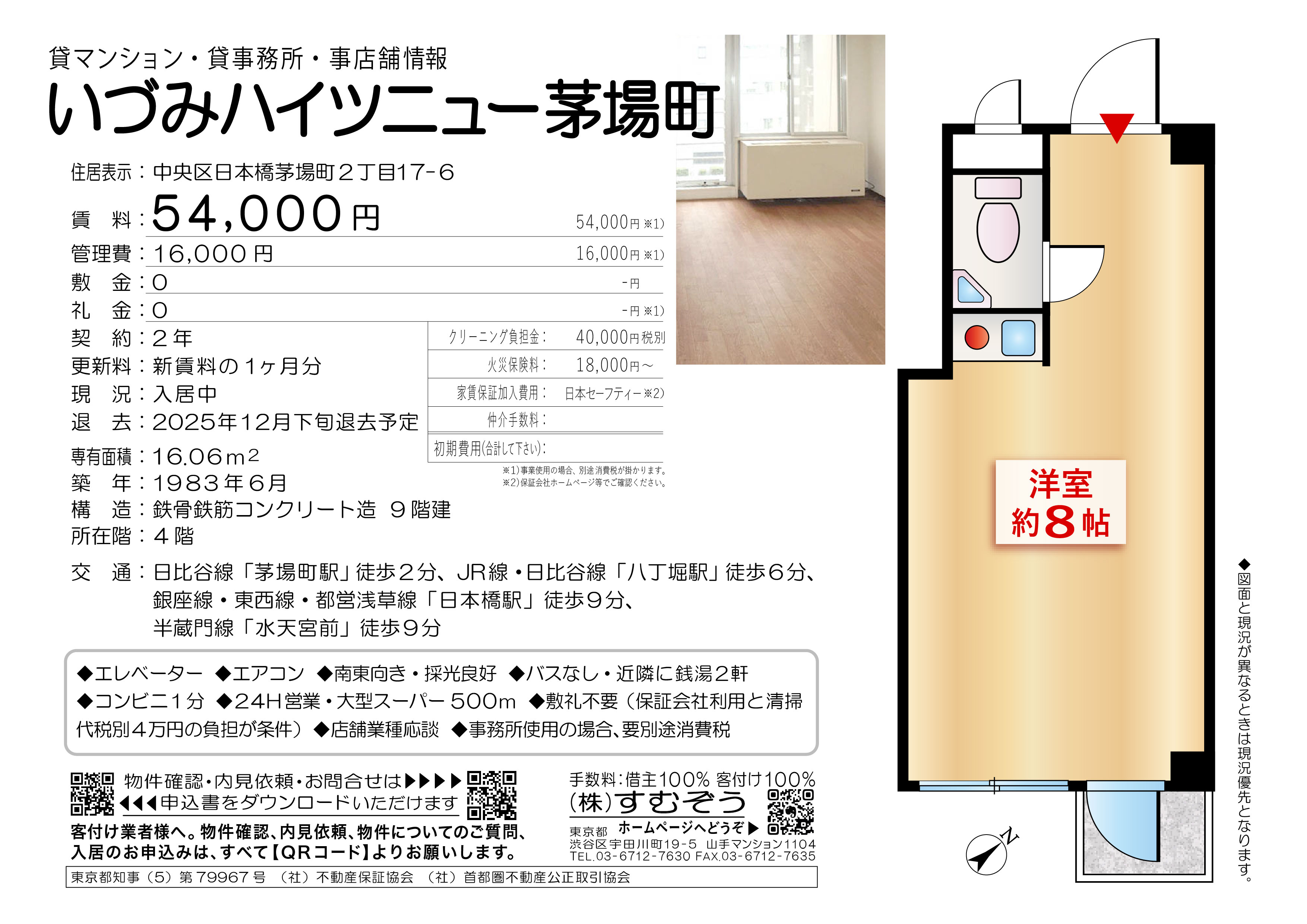 貸マンション・貸事務所・貸店舗 茅場町駅 いづみハイツニュー茅場町