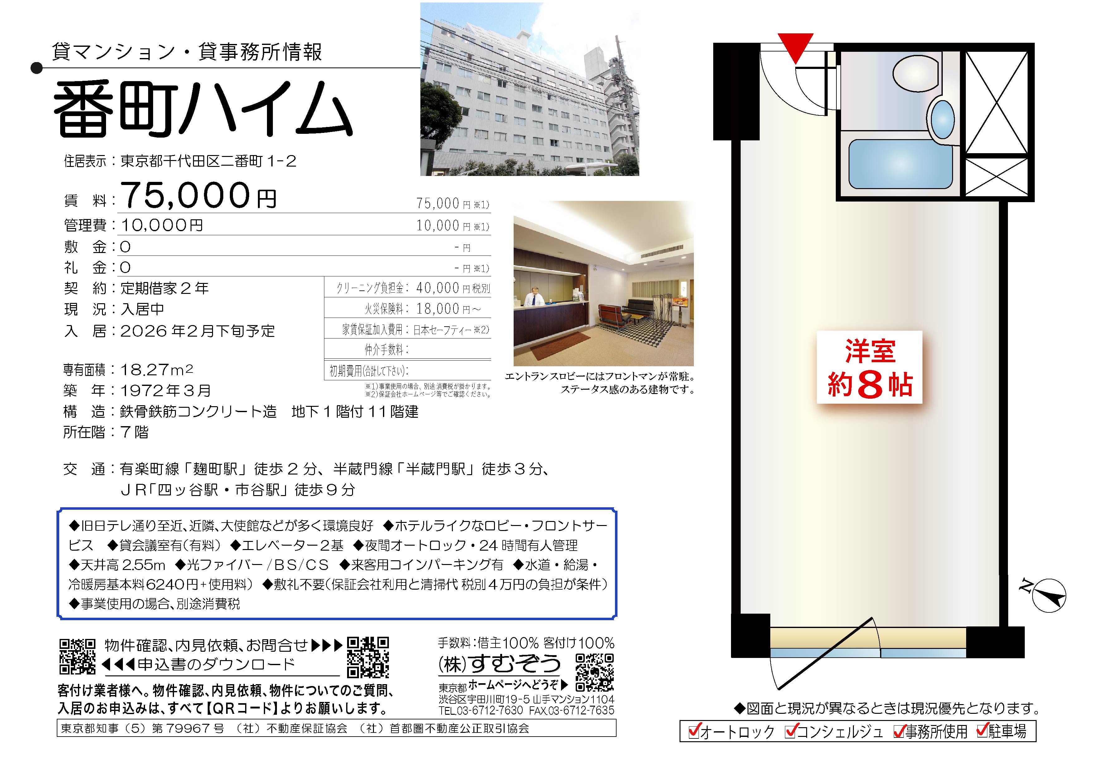 貸マンション・貸事務所 麹町駅 番町ハイム