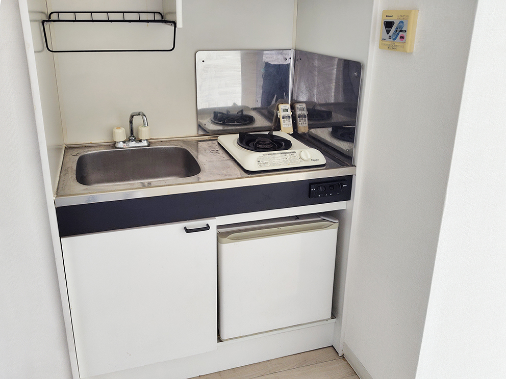 設備 | ユニットバス・トイレ ミニキッチン ガスコンロ1口 ミニ冷蔵庫 給湯 エアコン エレベーター コインランドリー 宅配ボックス 集合ゴミ置場 |
