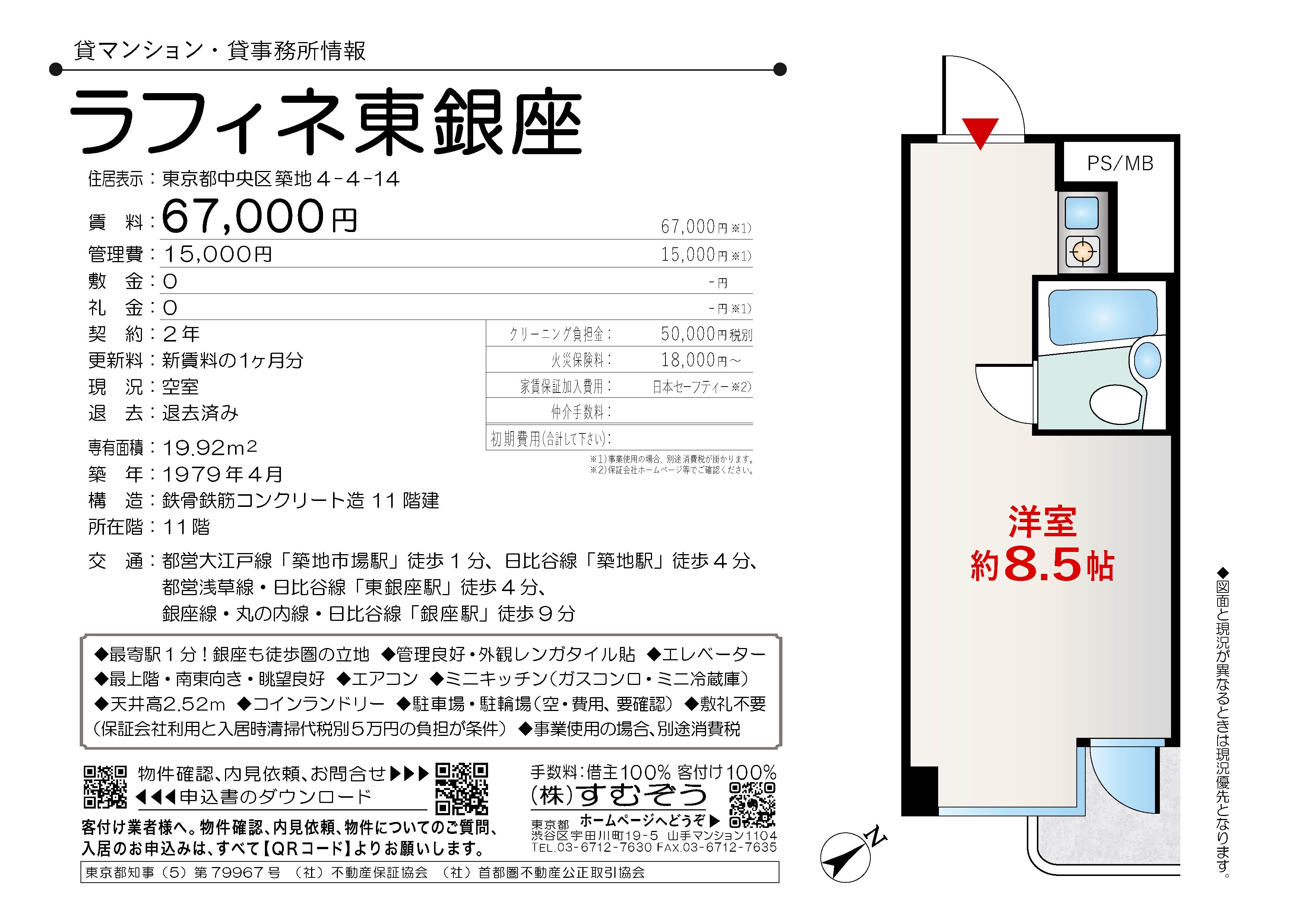貸マンション・貸事務所 築地市場駅 ラフィネ東銀座