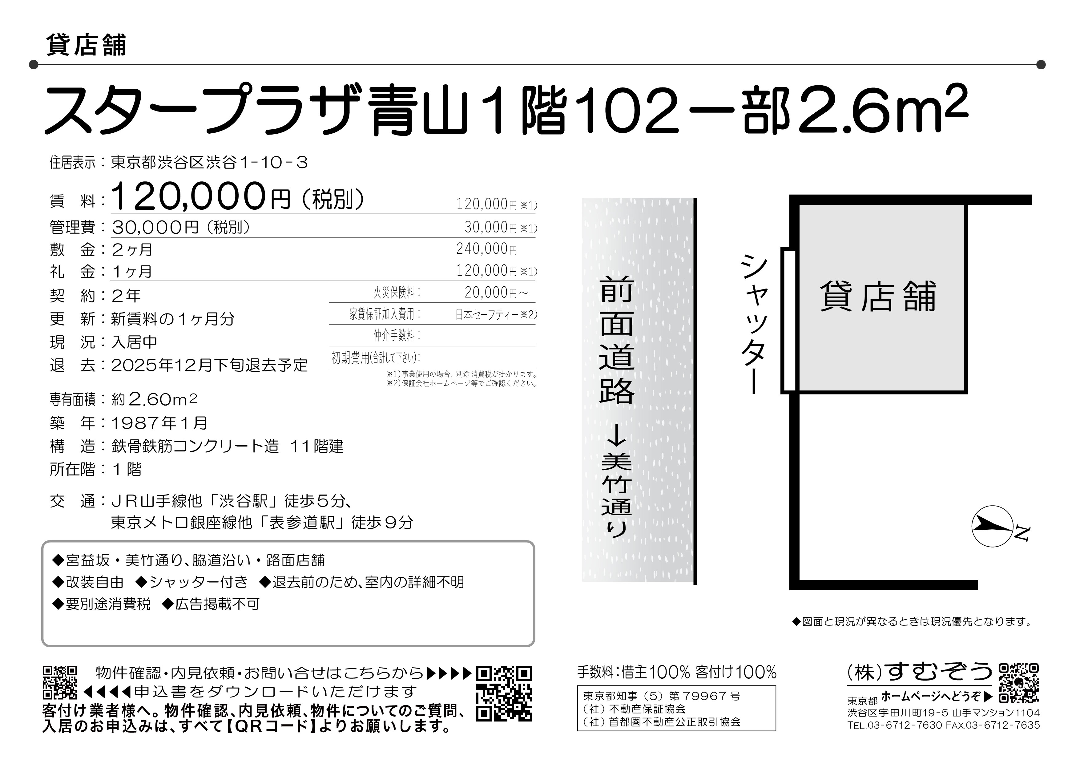 貸店舗 渋谷駅 スタープラザ青山1階102一部2.6㎡