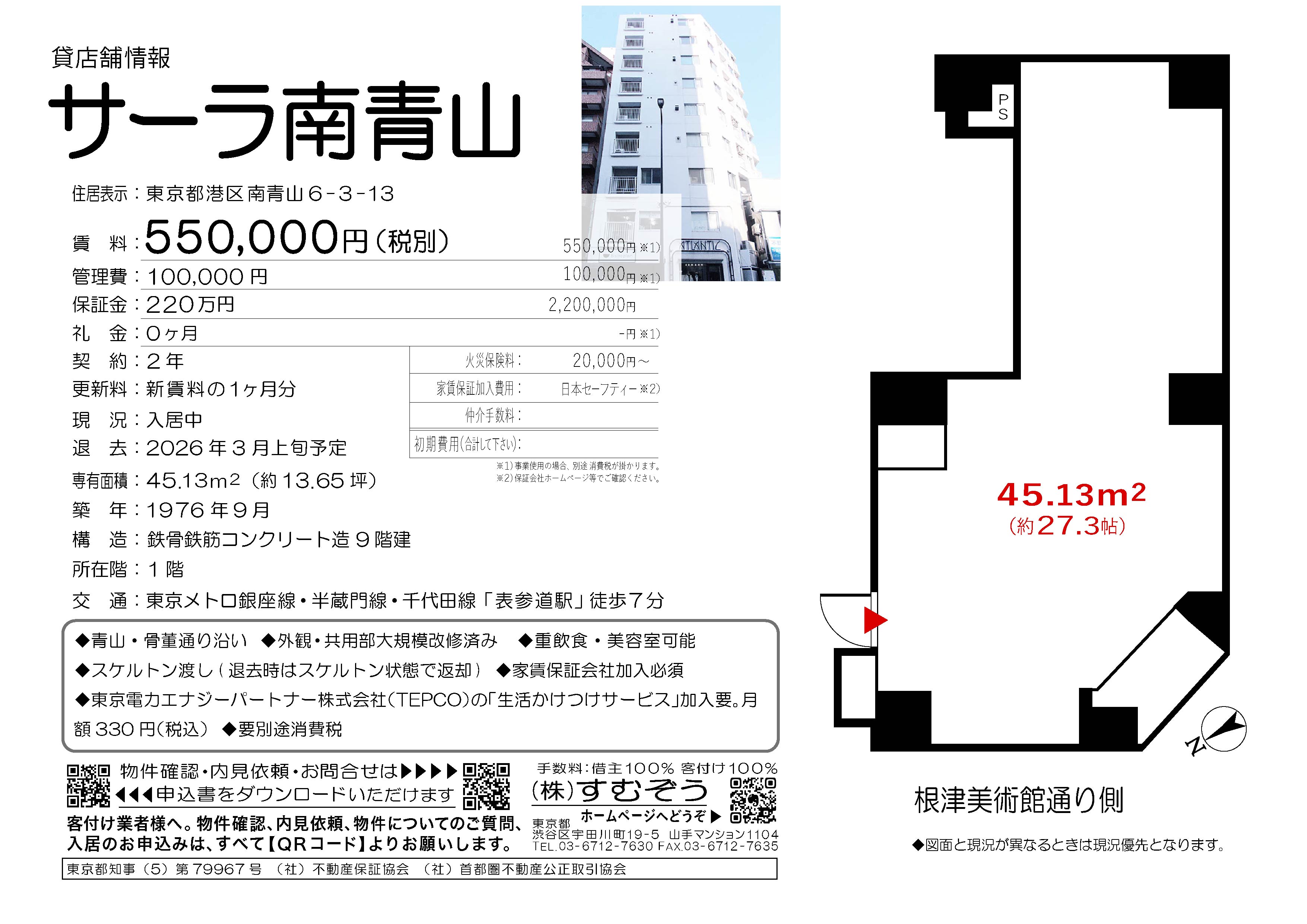 | 交通 | 銀座線「表参道駅」徒歩8分 半蔵門線「表参道駅」徒歩8分 千代田線「表参道駅」徒歩8分 |