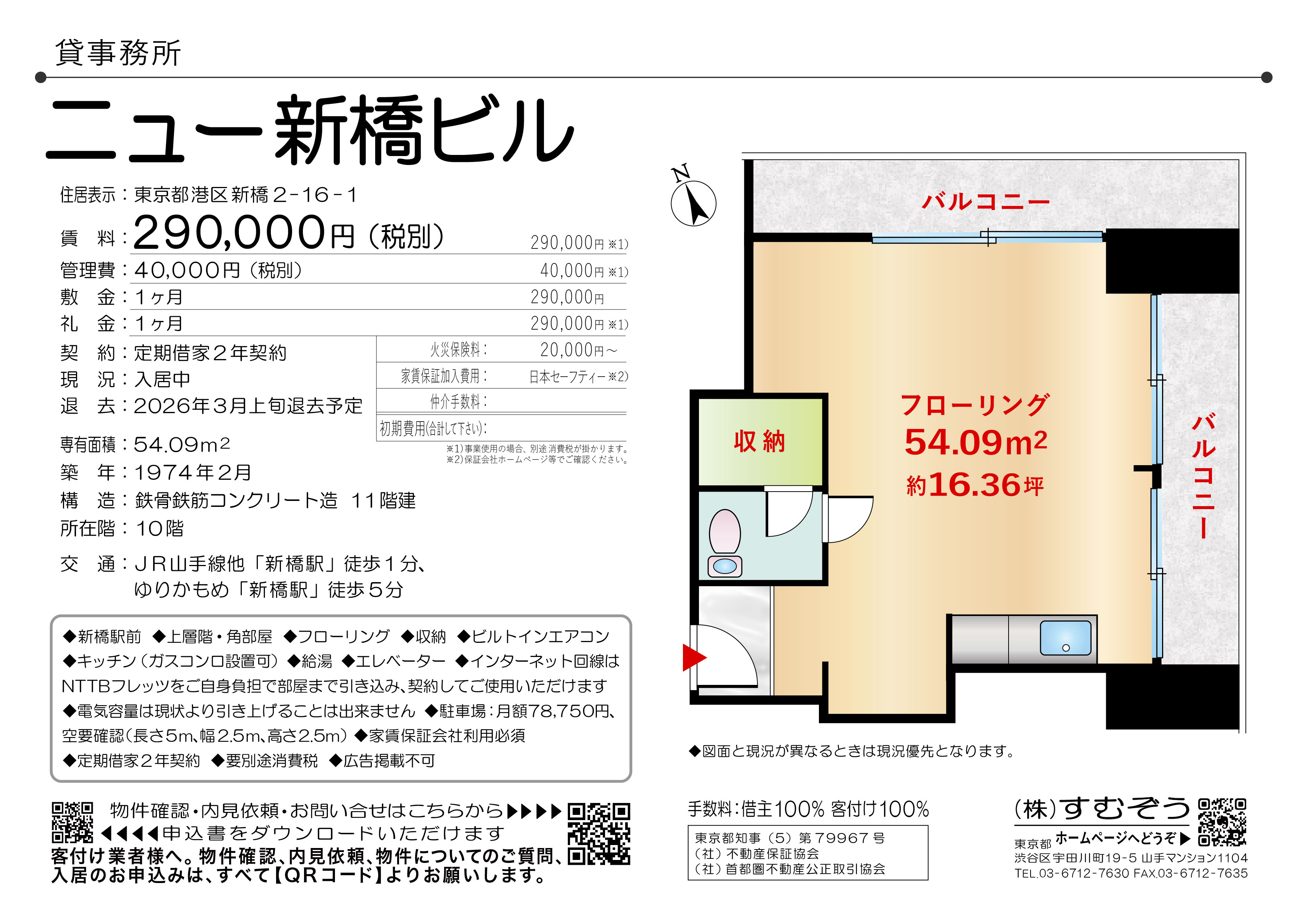 間取り:1R 専有面積:54.09㎡ 築年月:1974年02月 賃料:29万円(税別)