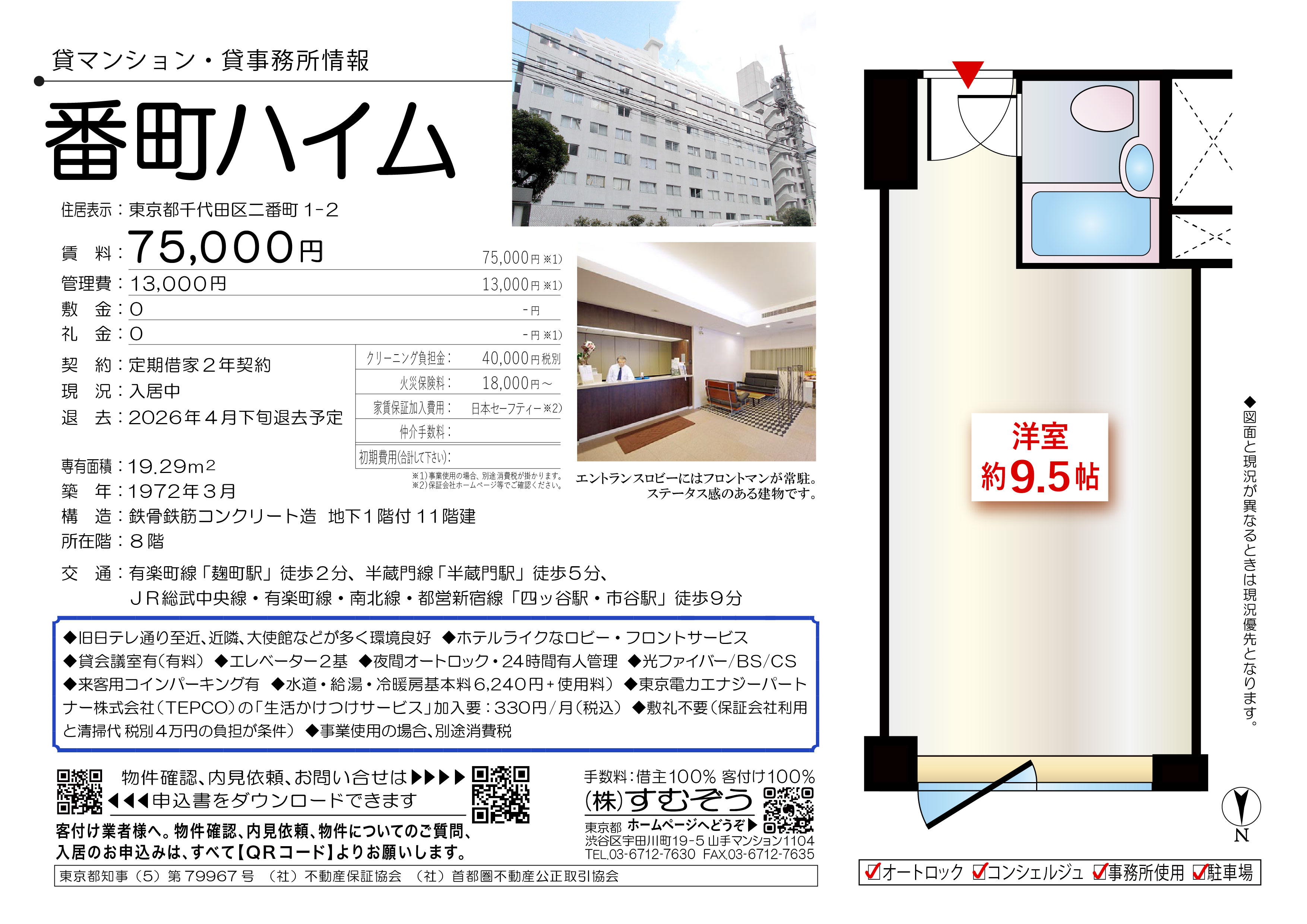 貸マンション・貸事務所 麹町駅 番町ハイム