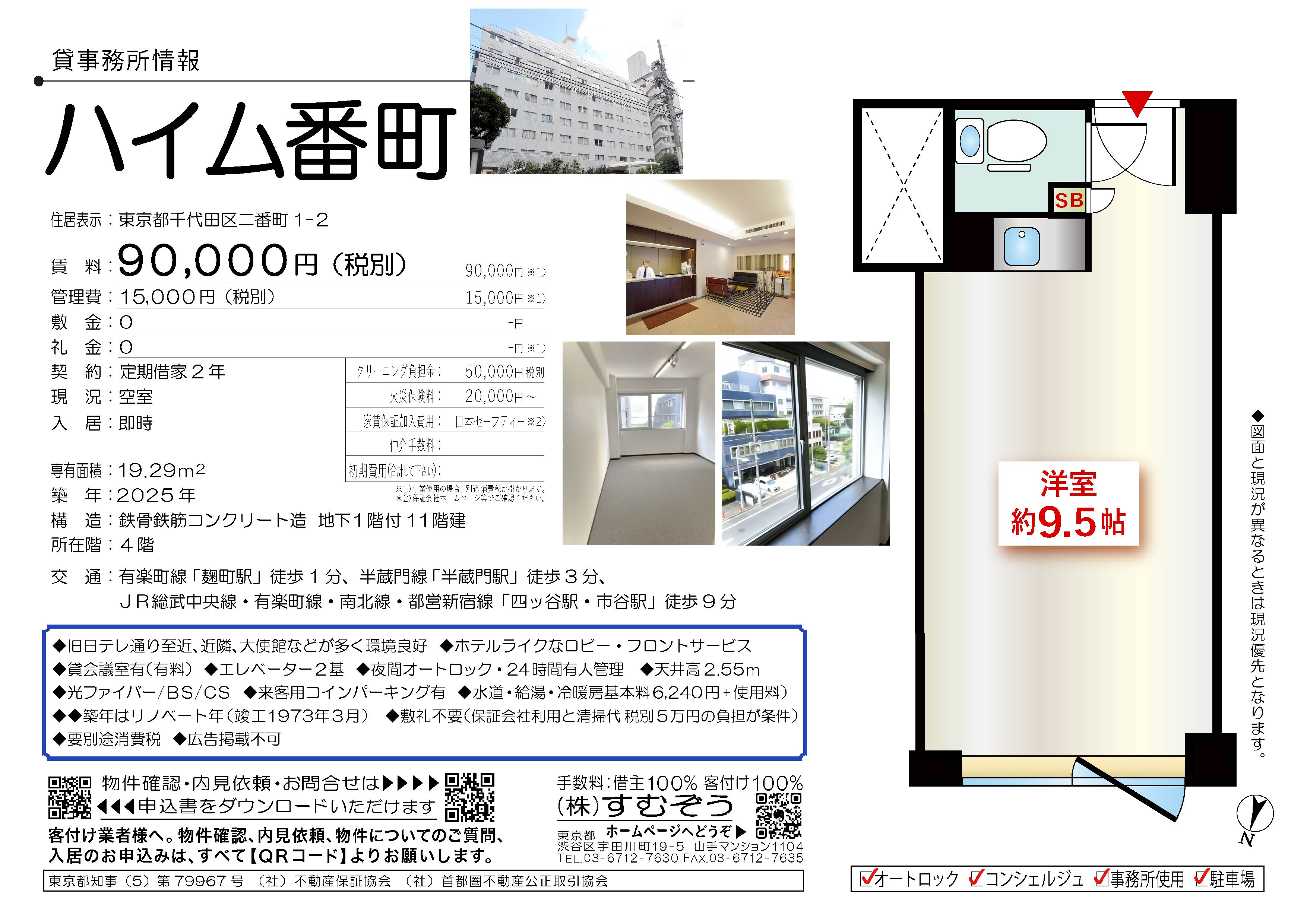 | 交通 | 東京メトロ有楽町線「麹町駅」徒歩1分 東京メトロ半蔵門線「半蔵門駅」徒歩3分 JR 線「四ッ谷駅・市谷駅」徒歩9分 |