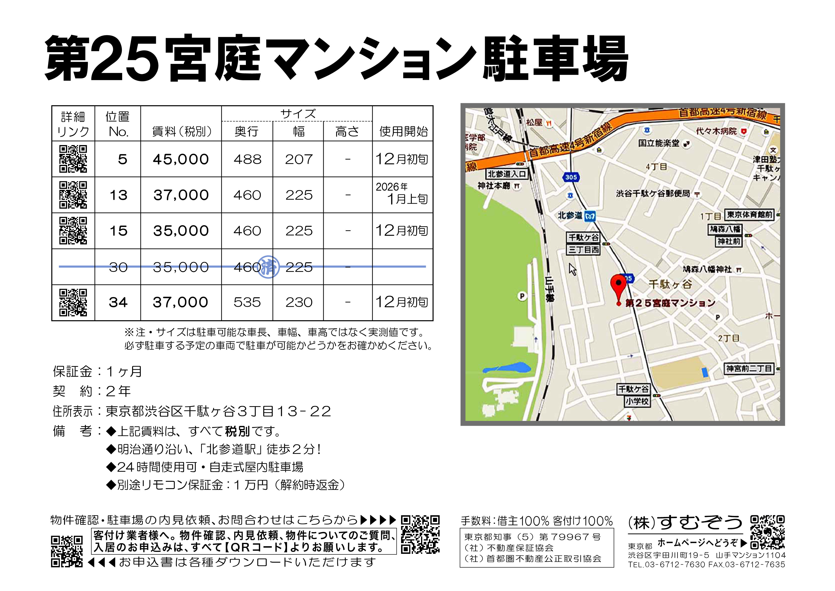 貸駐車場 北参道駅 第25宮庭マンション駐車場