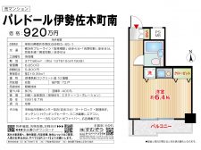 間取り:1R 専有面積:壁芯19.39㎡ 築年月:1991年07月 価格:920万円