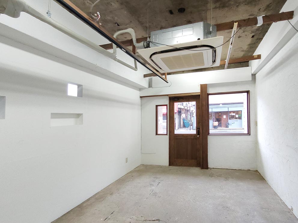 | 設備 | シャッター 専用トイレ ミニキッチン・ガス給湯 ビルトインエアコン2基・壁掛けエアコン1基 |