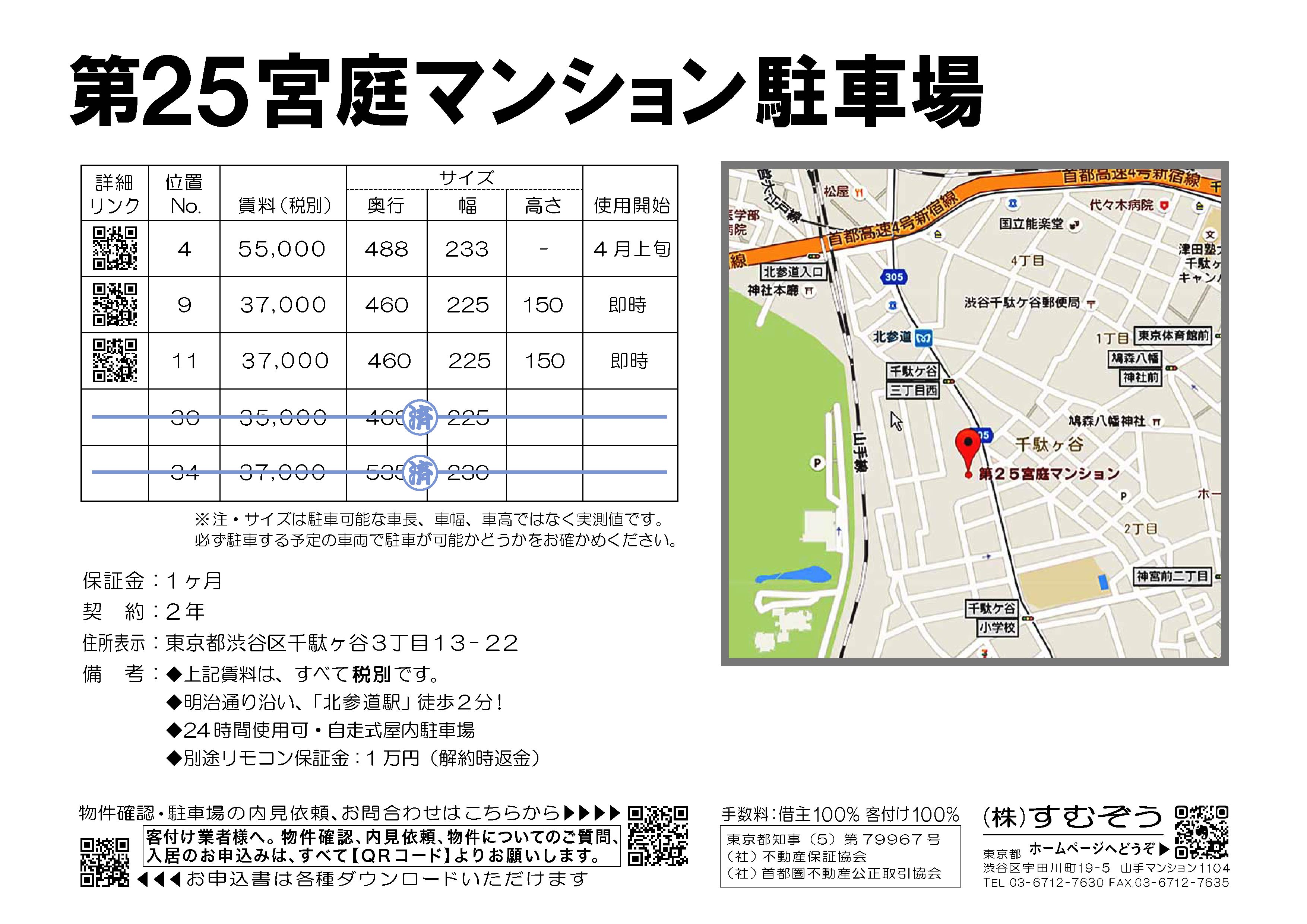 自走式屋内駐車場 明治通り沿い 24時間使用可 北参道駅2分 ※必ず一度、駐車予定の車両で試し入れしてください。