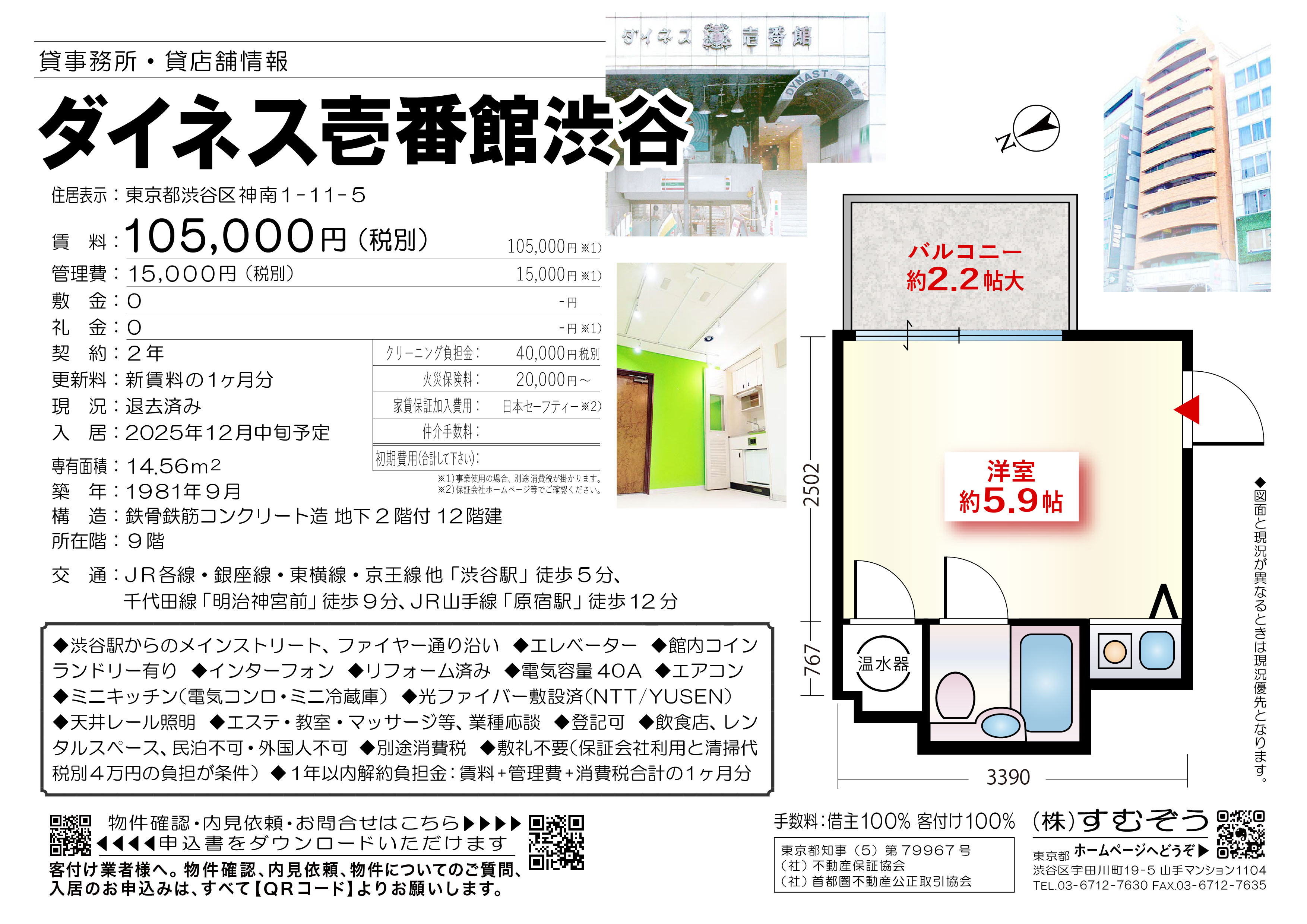 貸事務所・貸店舗 渋谷駅 ダイネス壱番館渋谷