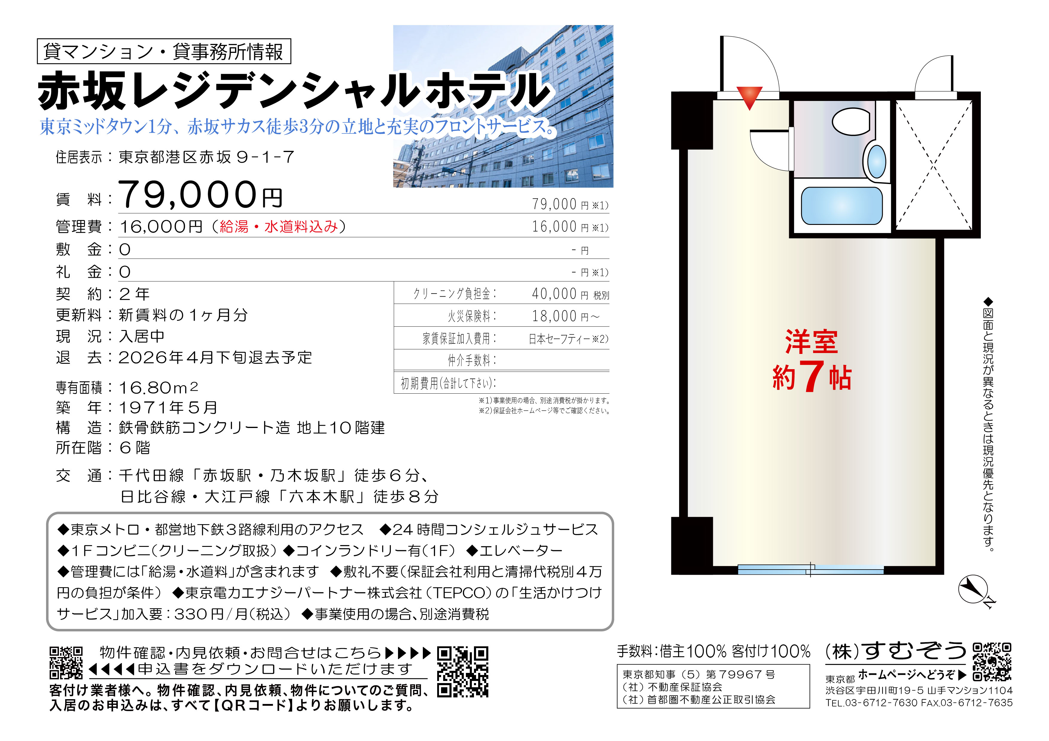 間取り:1R 専有面積:16.80㎡ 築年月:1971年05月 賃料:7.9万円